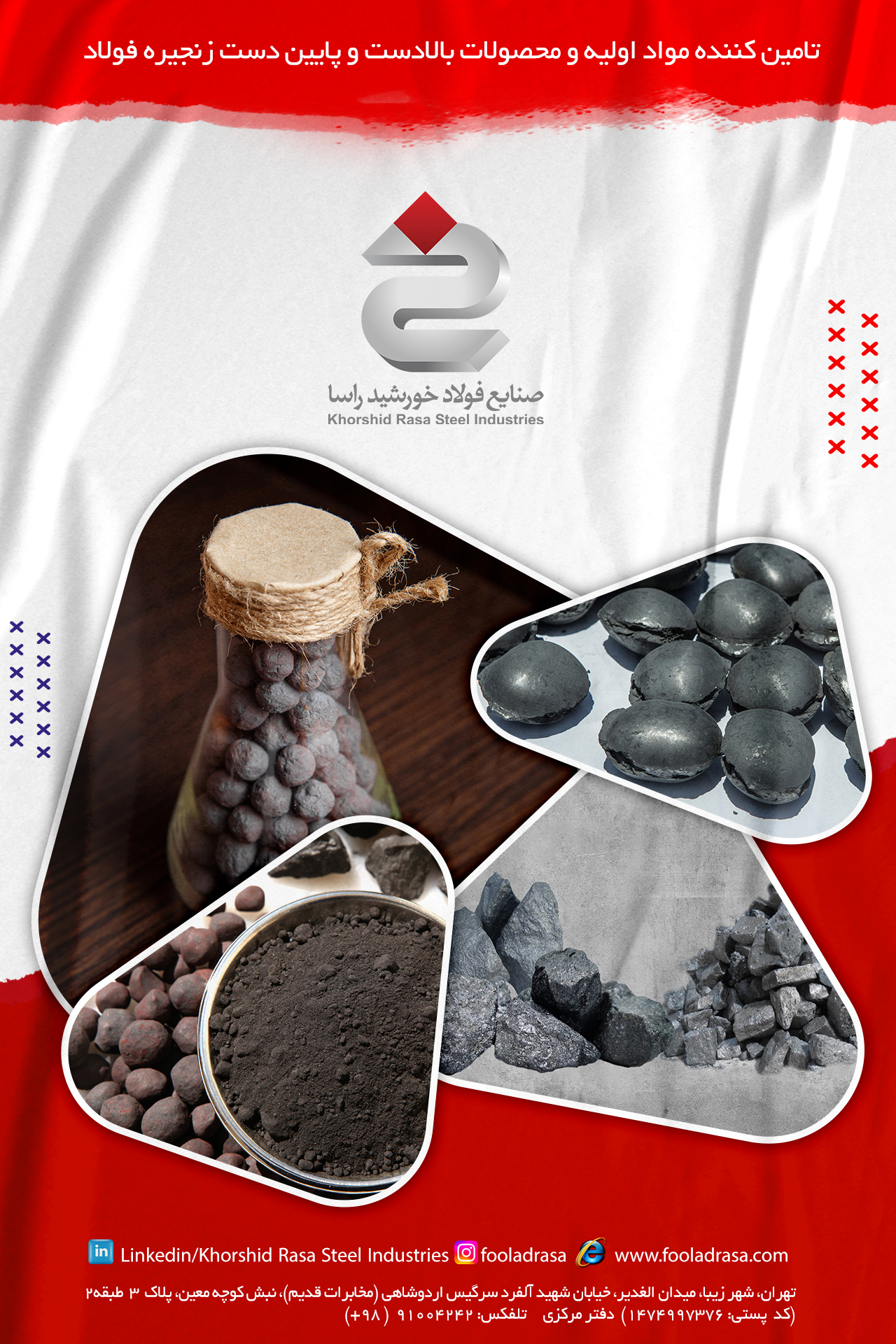 ✳️شرکت #صنایعفولادخورشید_راسا 🔹تامین کننده مواد اولیه و محصولات بالادست و پایین دست زنجیره فولاد 🔸سنگ آهن (مگنت و همات) 🔹کنسانتره سنگ آهن 🔸گندله سنگ آهن 🔹آهن اسفنجی 🔸انواع شمش فولادی 🔹انوع فروآلیاژها (فرومنگنز، فروسیلیس، فروسیلیکو منگنز، ...) 🔸تامین کننده انواع مقاطع تخت و طویل فولادی (میلگرد، تیرآهن، نبشی، ناودانی، ورق های گرم و سرد، گالوانیزه، لوله پروفیل، ...) 🔹واردکننده و توزیع کننده انواع ورق استیل ضد زنگ (شیت و رول) ☎️ 021-91004242🆔 https://telegram.me/fooladrasa🌐 www.fooladrasa.com📌 https://www.instagram.com/fooladrasa❇️ https://foolad24.com/profile/10936