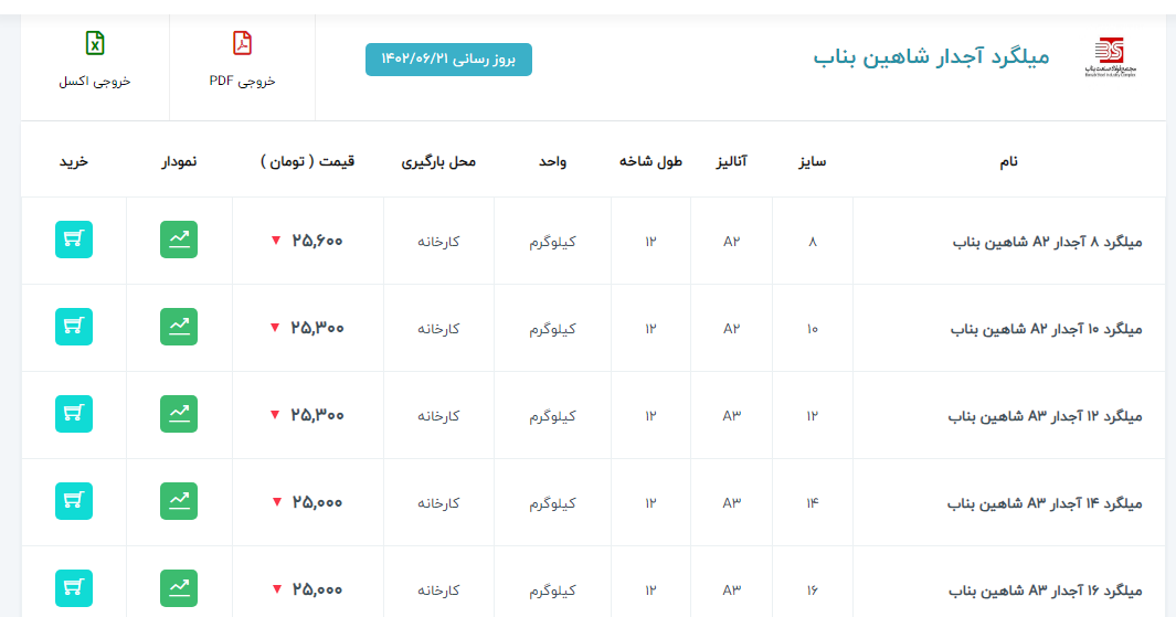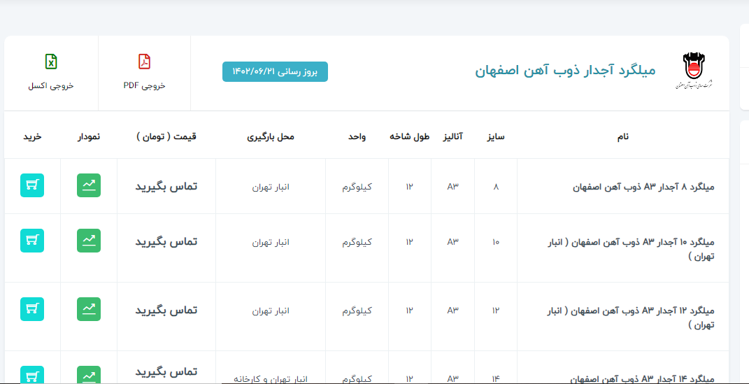 میلگرد 8↔️ 26400 تومان میلگرد 10↔️ 26200 تومان میلگرد 12↔️ 26200 تومان میلگرد 14↔️ 25600 تومان .