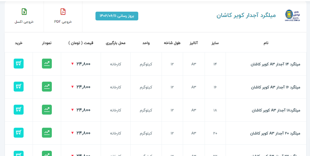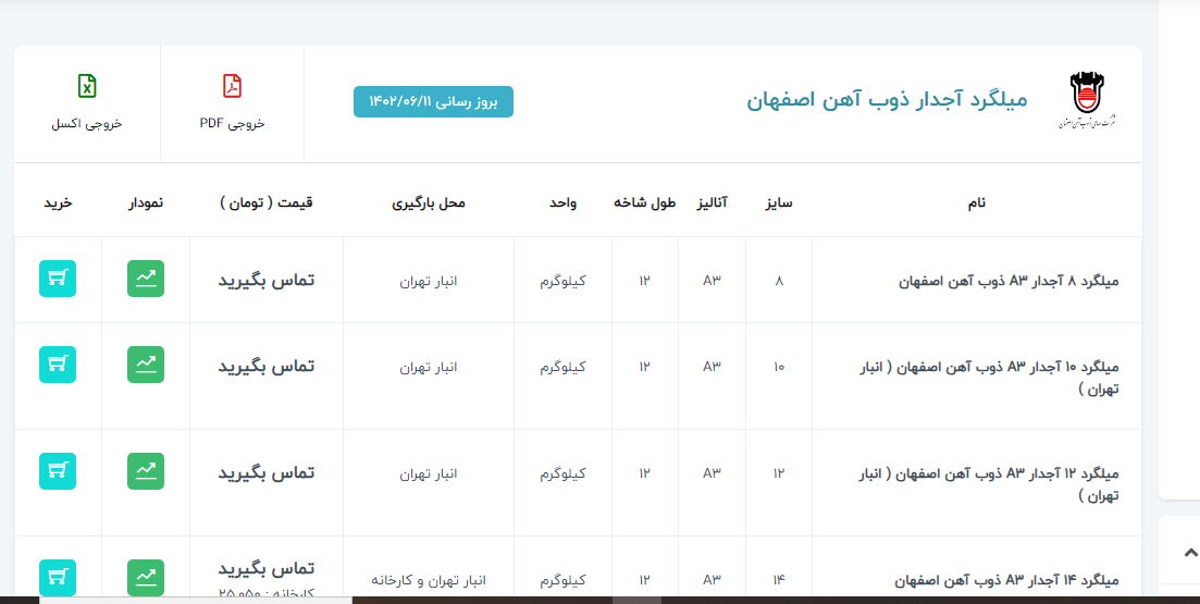 اعلام موجودی میلگرد آجدار در انبار دیجی آهن