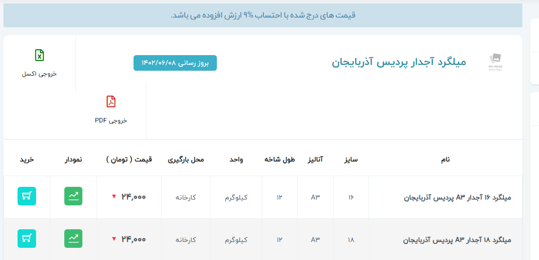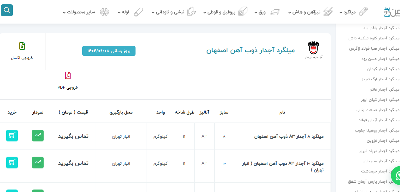 🔸 میلگرد ۸ a2 آجدار: ۲۵۰۵۰۰﷼ 🔸 میلگرد ۱۰ a2 آجدار:۲۴۳۵۰۰﷼ 🔸 میلگرد ۱۰ a3 آجدار: ۲۴۸۵۰۰ ﷼ 🔸️ میلگرد ۱۲ a3 آجدار: ۲۴۳۵۰۰﷼ 🔸️ میلگرد ۱۴تا۲۵ a3 آجدار: ۲۳۸۵۰۰﷼ 🔸 میلگرد ۲۸و۳۲ a3 آجدار: ۲۴۱۵۰۰
