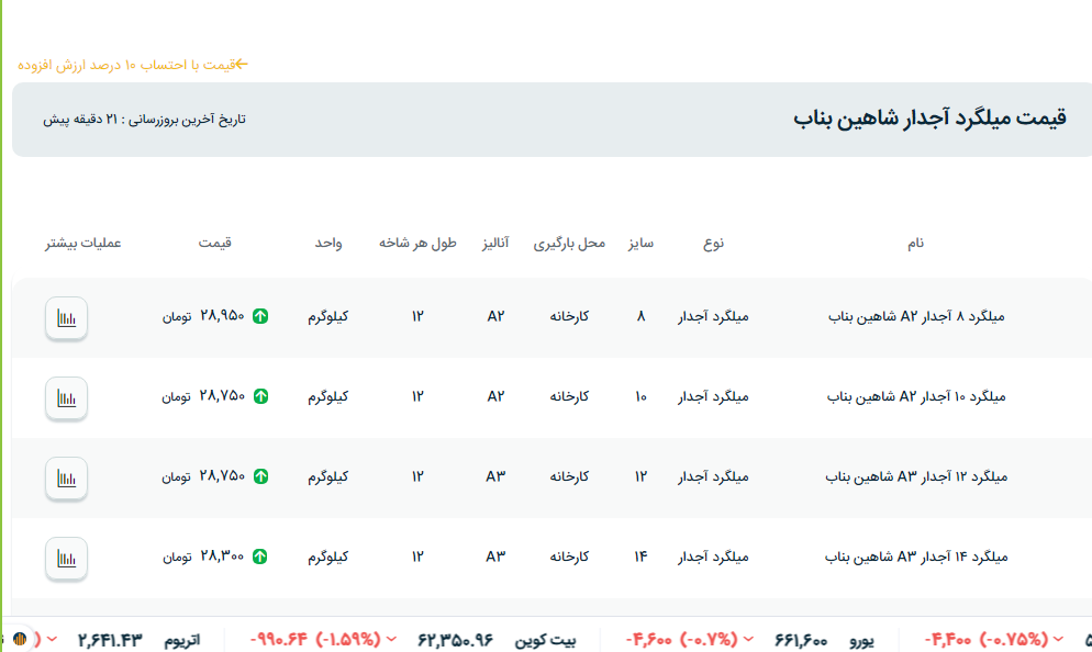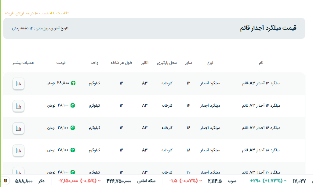 اعلام موجودی و قیمت روزمیلگرد در انبار دیجی آهن