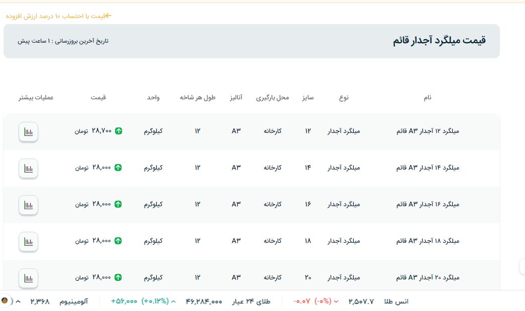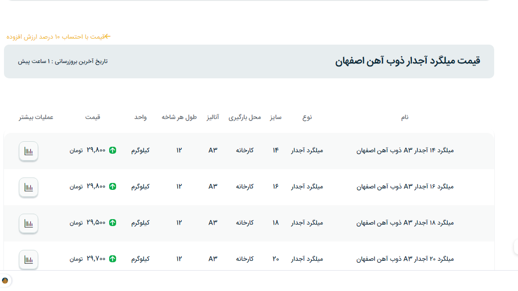 ﷽ آهن ایران 📣 قیمت ميلگرد فولاد آرین 🚚بارگیری از کارخانه شنبه 27 مرداد ........................................................................................................................................ میلگردسایز10👈29.300✍️A2 میلگردسایز10👈29.300✍️A3 میلگردسایز12👈29.000 ✍️A2 میلگردسایز12👈29.000✍️A3 میلگردسایز14👈28.800 میلگرد سایز16👈28.800 میلگردسایز 18👈28.800 میلگردسایز20👈28.800 میلگردسایز22👈28.800 میلگردسایز25👈28.800 ✅فروش یکماهه با چک معتبر ثبتی ✅کلیه قیمتها با احتساب 10% مالیات بر ارزش افزوده می باشد ....................................................................................................................................... ☎️031-33330900☎️ دفتر مرکزی اصفهان ☎️031-33330400☎️ آهن ایران