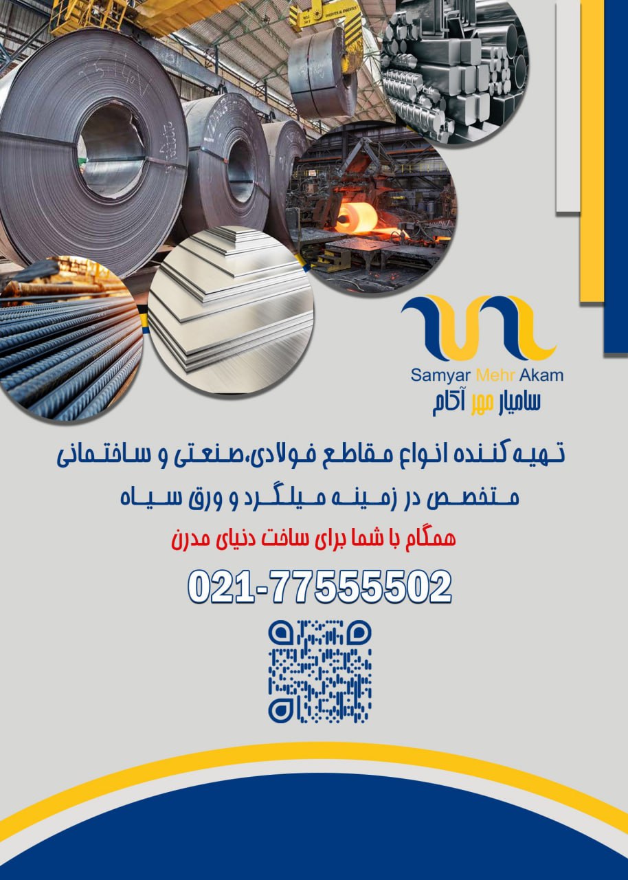 #سامیار_مهر_آکام سامیار مهر آکام تهیه کننده و توزیع کننده انواع مقاطع فولادی و به صورت تخصصی ورق های صنعتی و ساختمانی و میلگرد ⭕️فولاد مبارکه ⭕️ذوب آهن اصفهان کاویان نیشابور اکسین جهان فولاد سیرجان خرم آباد ابرکوه قطعات زاگرس درخشان الوند گرمسار خلیج #جهت_مشاهده_پروفایل_سامیار_مهر_آکام👇🏻 📌https://foolad24.com/profile/10876 #جهت_مشاهده_اعلام_موجودی_سامیار_مهر_آکام👇🏻 https://foolad24.com/profile/10876/inventory 02177555502 🔵🟡برای دریافت اطلاعات بیشتر از لینک زیر استفاده کنید 👉https://zil.ink/samyarmehrakam