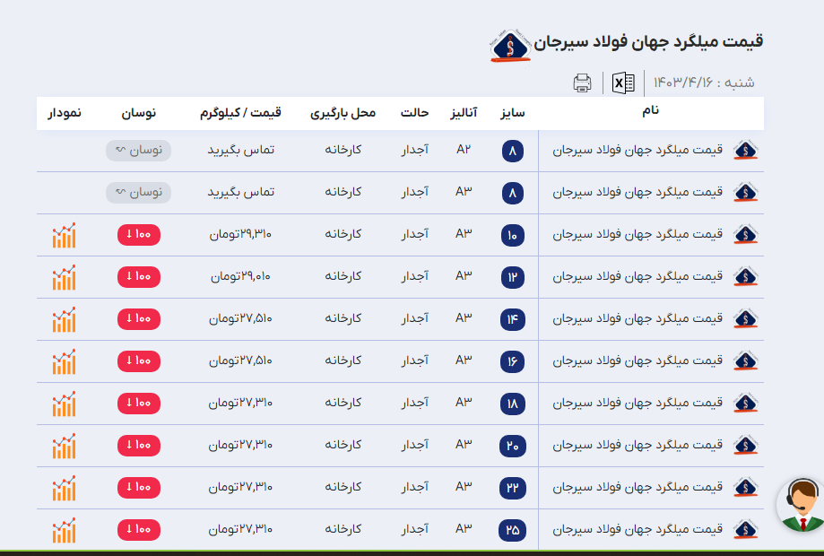 1403/4/16 شرکت فولاد خورشید ایرانیان ( شیدوش ) #انبار_تهران (اجناس امانی) 6.5 ساختمانی 28700 8 ثامن 30100 8 سپهر 30100 10 الماس 28550 10 تاکستان 28550 10 آریا 28550 10 ابهر 28550 12 ابهر 28600 10 آسیا قیمت مناسب 10 ثامن قیمت مناسب 10 آرین آ2 قیمت مناسب 10 آرین آ3 قیمت مناسب 12 آرین آ3 قیمت مناسب 14 سیرجان 27750 16 سیرجان 27600 18 سیرجان 27750 20 سیرجان 27600 22 سیرجان 27600 16 کوثر اهواز 27600 18 کوثر اهواز 27750 20 کوثر اهواز 27600 8 ابهر 30100 10 ابهر 28600 12 ابهر 28600 16 ابهر 27600 18 ابهر 27750 20 ابهر 27600 8 ابهر آ3 موجود 10.12 ابهر آ3 موجود 16 کاسپین 27600 18 کاسپین 27750 20 کاسپین 27600 18 کوثر اهواز 27750 20 کوثر اهواز 27600 18 زاگرس 27750 20 زاگرس 27600 18 خلیج 27750 20 خلیج 27600 16 خلیج 27600 16 یزد 27600 16 آریا موجود 18 آریا موجود 20 آریا موجود 22 آریا موجود 18 میانه 27750 18 هیربد 27750 18 فایکو 27750 12 ذوبی قیمت مناسب 14 نیشابور موجود 16 نیشابور موجود 18 نیشابور موجود 20 نیشابور موجود 22 نیشابور محدود 28300 25 نیشابور موجود 32 نیشابور موجود 🔴تمامی قیمتها با تایید لحظه ای میباشد لینک عضویت در تلگرام https://telegram.me/shidvashironnew 🔴 تلفن ویژه 37546000 🔴 تلفن ویژه 44216016 🔴 تلفن ویژه 66834410