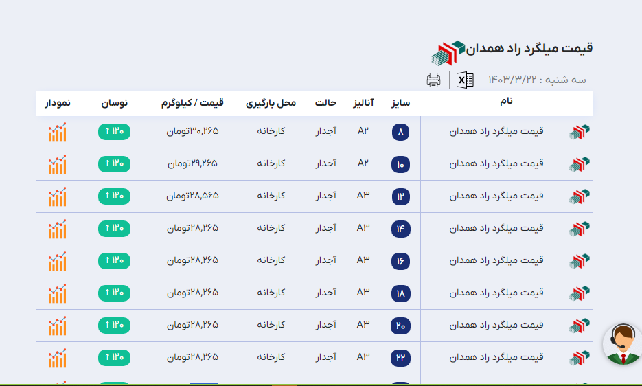 اعلام موجودی و قیمت روز میلگرد در انبار دیجی اهن