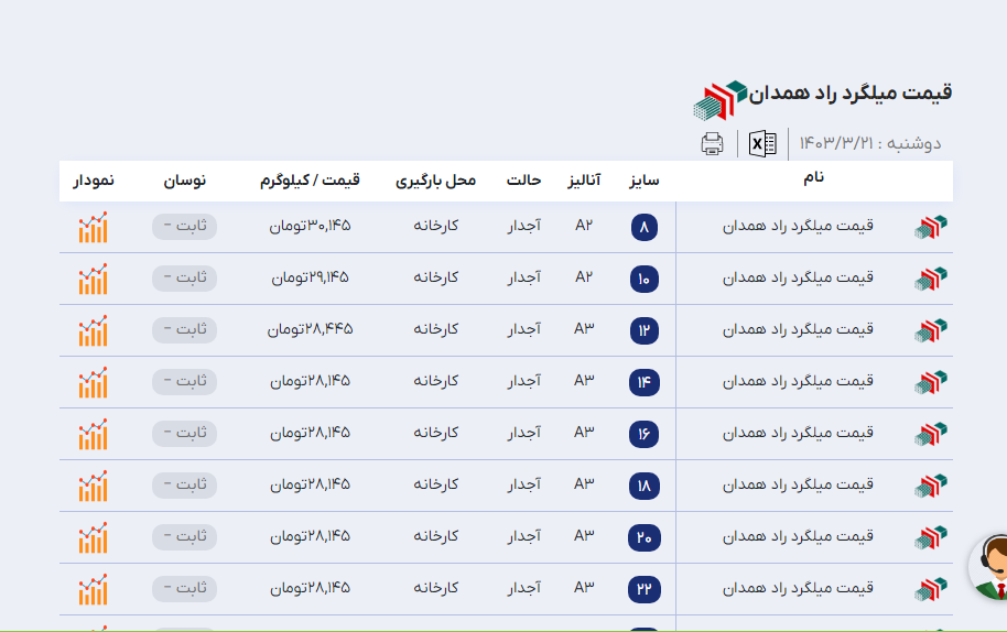 آذین سپهر الوند💫 #انواع میلگرد💯 🔸میلگرد آجدار 14 شاخه 12 متری A3 محل تحویل کارخانه 🔸میلگرد آجدار 16 شاخه 12 متری A3 محل تحویل کارخانه 🔸میلگرد آجدار 18 شاخه 12 متریA3 محل تحویل کارخانه 🔸میلگرد آجدار 20 شاخه 12 متری A3 محل تحویل کارخانه 🔸میلگرد آجدار 22 شاخه 12 متری A3محل تحویل کارخانه 🔸میلگرد آجدار 25 شاخه 12 متری A3 محل تحویل کارخانه 🔸میلگرد آجدار 28 شاخه 12 متری A3 محل تحویل کارخانه 🔸میلگرد آجدار 32 شاخه 12 متری A3 محل تحویل کارخانه به دلیل نوسانات بازار برای تأیید موجودی و قیمت و ثبت سفارش تماس بگیرید ❗ کانال تلگرام 🤳 https://t.me/azinsepehralvand سایت🌐 www.azinsepehrco.com ☎️☎️☎️☎️☎️☎️ 📞09132381828 📞09394117828 📞03152467528 https://t.me/azinsepehralvan
