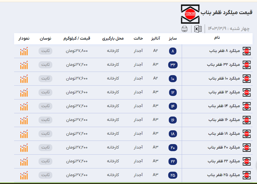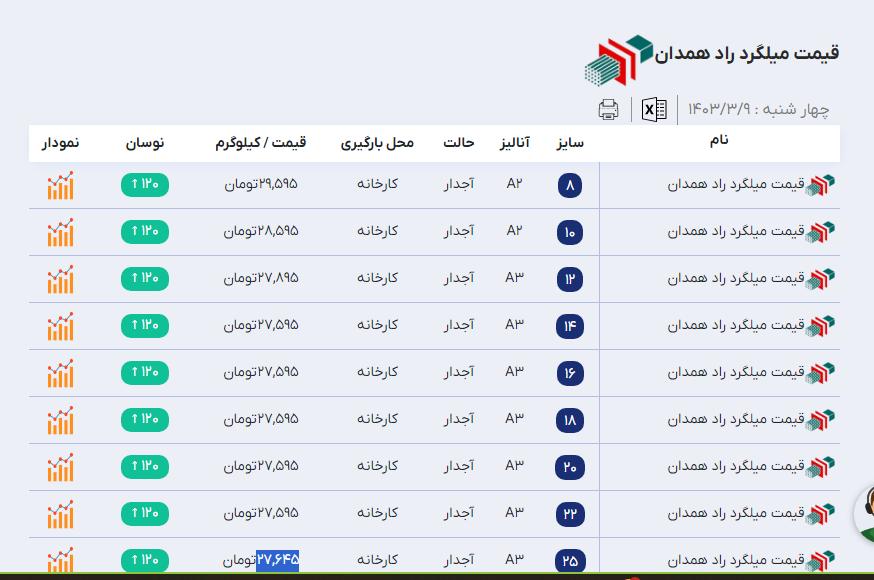 اعلام موجودی میلگرد ساده