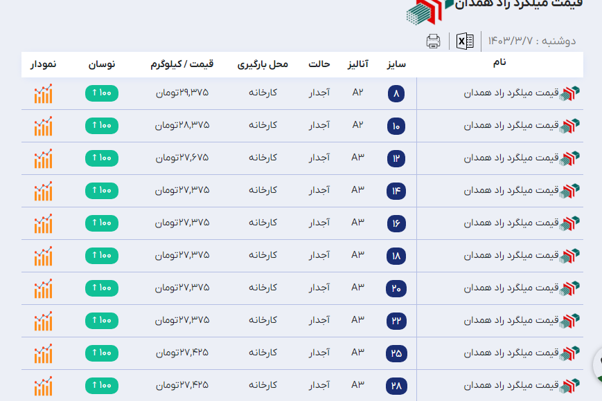 میلگرد نیشابور سبد ۱۶ تا ۳۲ قابل استعلام موجود در انبار تا ۵۰۰ تن