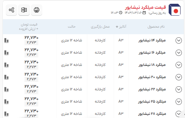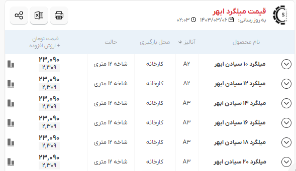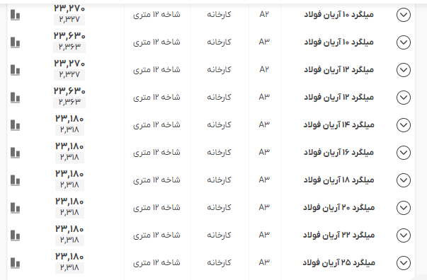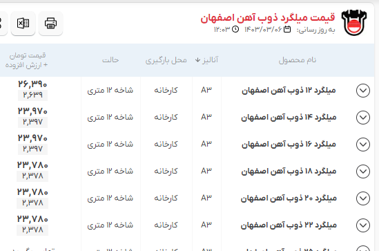 اعلام موجودی میلگرد