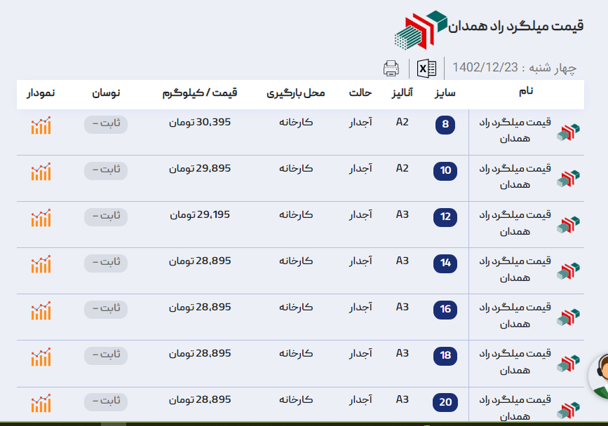 اعلام موجودی میلگرد