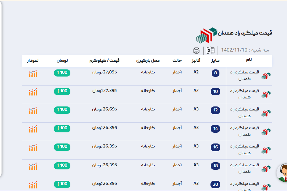 اعلام موجودی میلگرد