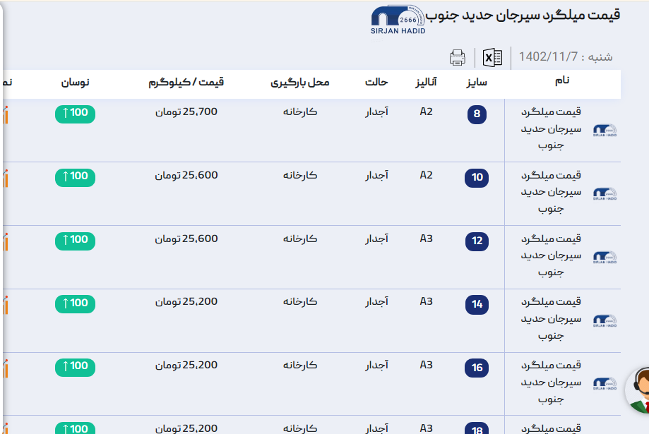 اعلام موجودی میلگرد جهان فولاد سیرجان