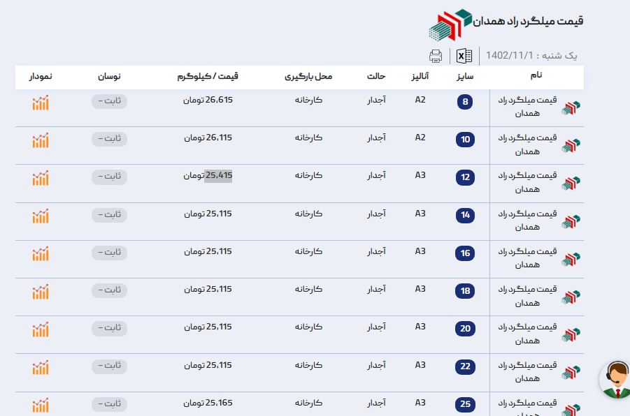 1402/11/1 شرکت فولاد خورشید ایرانیان ( شیدوش ) #انبار_تهران (اجناس امانی) 10 امیرکبیر آ3 12 امیرکبیر آ3 14.16.18 امیرکبیر 20.22.25 امیرکبیر 28.32 امیرکبیر قیمت تلفنی؟ لینک عضویت در تلگرام https://telegram.me/shidvashironnew 🔴 تلفن ویژه 37546000 🔴 تلفن ویژه 44216016 🔴 تلفن ویژه 66834410