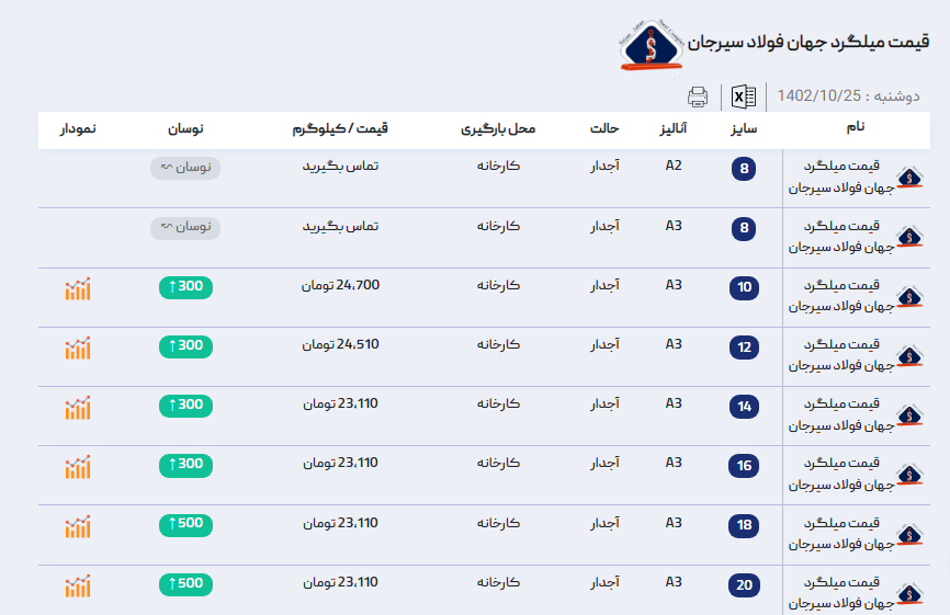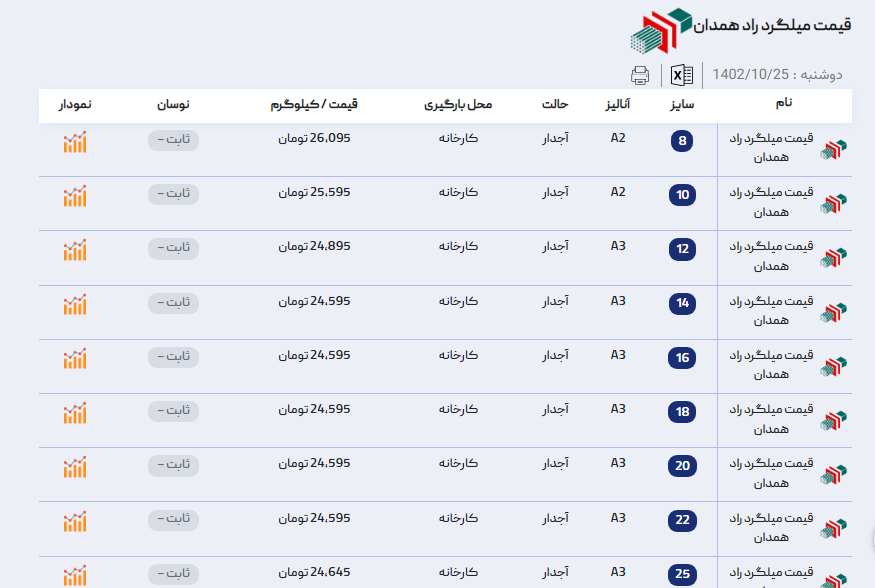 1402/10/25 شرکت فولاد خورشید ایرانیان ( شیدوش ) #انبار_تهران (اجناس امانی) 6.5 ساختمانی ملایر 6.5 ساختمانی الیگودرز 8 شاهین بناب 8 سپهر 10 ثامن 10 آسیا 10 آرین 12 آرین 12 آسیا آ3 12 شمس آ3 14 کوثر اهواز 16 کوثر اهواز 18 کوثر اهواز 20 کوثر اهواز 10 ابهر 12 ابهر 14 ابهر 16 ابهر 18 ابهر 20 ابهر 18 پرشین 18 ارگ تبریز 14 سیرجان 18 سیرجان 20 سیرجان 25 شاهین بناب 14 آریا فولاد 16 آریا فولاد 18 آریا فولاد 20 آریا فولاد 14 گروه ملی 16 گروه ملی 20 گروه ملی 18 نیشابور 2تن 10 ساده درجه یک موجود 🔴برای دریافت قیمتها تماس بگیرید لینک عضویت در تلگرام https://telegram.me/shidvashironnew 🔴 تلفن ویژه 37546000 🔴 تلفن ویژه 44216016 🔴 تلفن ویژه 66834410 0912.1988268 0912.4883038 .