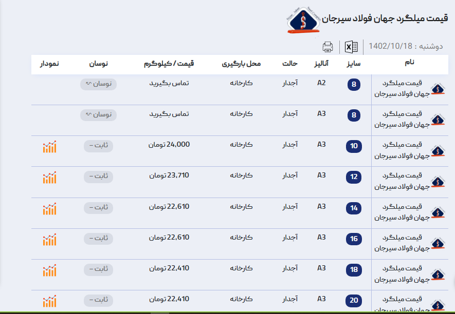 🗓 امروز دوشنبه ۱۸ دی ماه ۱۴۰۲ ✅قیمت انواع محصولات فولادی (بنگاه اصفهان) )✅قیمت ها با تایید میباشد. (انبار آهن آلات پورجم با باسکول تمام الکترونیک 60تنی) راه های ارتباطی با ما : ☎️ 0314202 ☎️ 03133869211 ☎️ 03133869212 میلگرد ۸ (A2)تیکمه داش ------------ میلگرد ۸ (A3) ------------ میلگرد ۱۰و۱۲ (A2) 237,000 میلگرد ۱۰ (A3) ----------- میلگرد ۱۲ (A3) 238,000 میلگرد ۱۴_۱۶(A3) 230,000 میلگرد ۱۸الی۳۲(A3) 230,000 ✅ کلیه محصولات موجود، بارگیری سریع، آماده ارسال