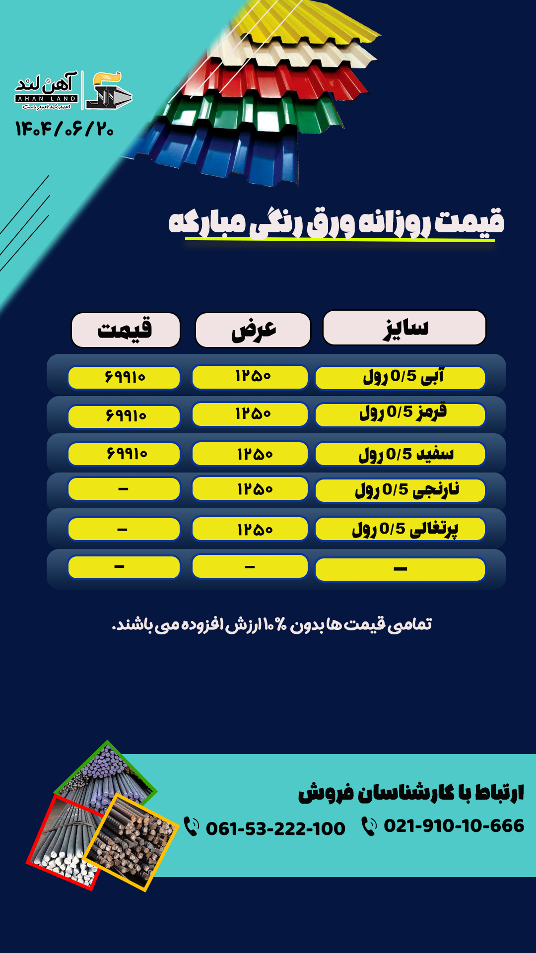۶*1500 8*1500 10*1500 15*1500 سالم پای برش 42000 2*1250 سبا 45000 3*1250 43800 5*1500*6000 6*1500*6000 8*1500*6000 10*1500*6000 فابریک 43000 09137306557 غلامی