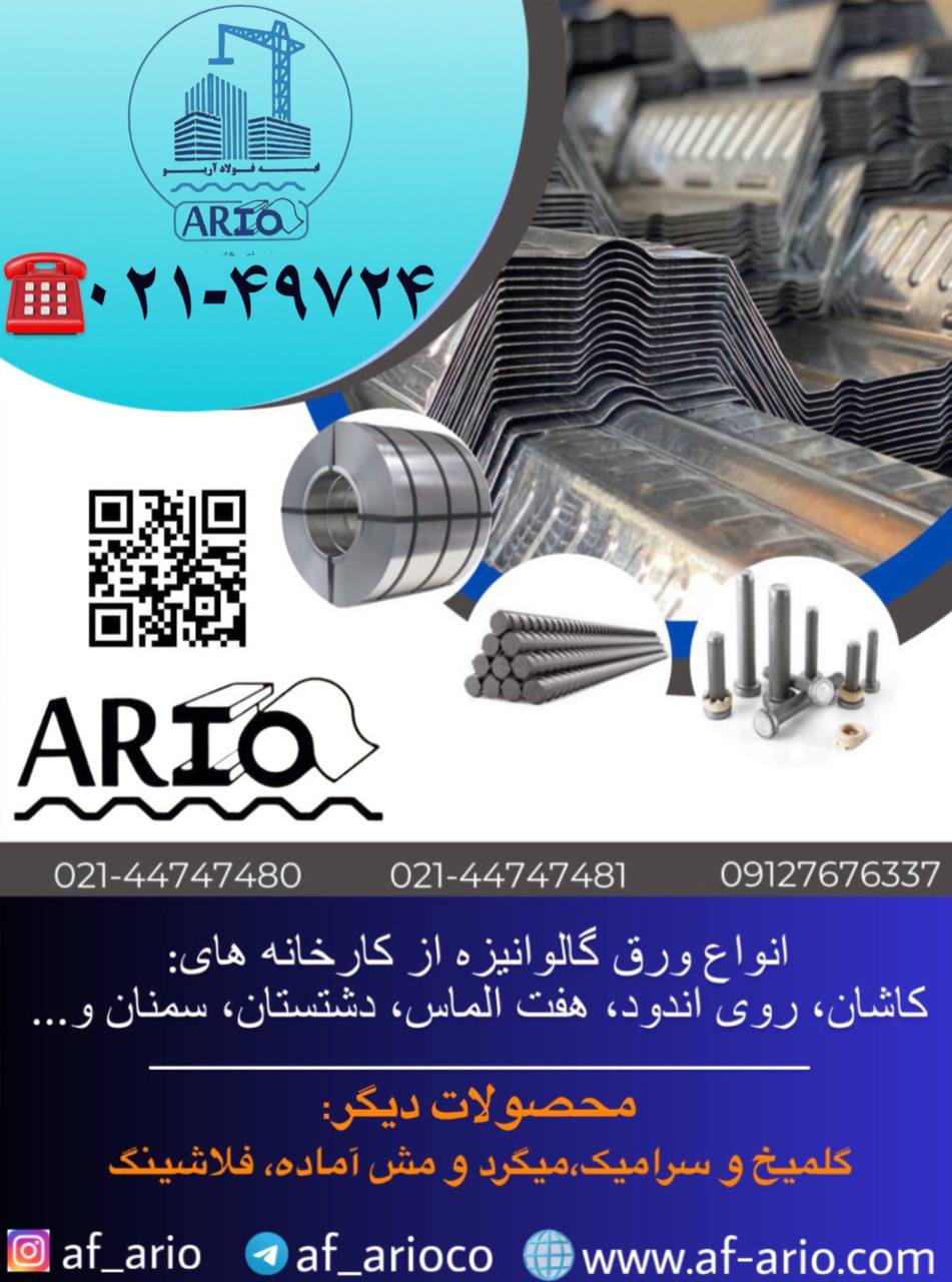 #ابنیه_فولاد_آریو ✨ تامین کننده انواع ورق گالوانیزه و رنگی (در طرحهای عرشه فولادی، شادولاین، کرکره و ...) ✨ عاملیت فروش گلمیخ فولاد آلیاژی ✨مجری تخصصی سقف عرشه فولادی ⭐️ابنیه فولاد آریو(سهامی خاص )⭐️ #جهت_مشاهده_پروفایل_ابنیه_فولاد_آریو https://foolad24.com/profile/2518 #جهت_مشاهده_اعلام_موجودی_ابنیه_فولاد_آریو https://foolad24.com/profile/2518/inventory راههای ارتباط با ما: ☎️ ۰۲۱۴۹۷۲۴ ☎️ ۰۲۱۴۴۷۴۷۴۸۰ ☎️ ۰۲۱۴۴۷۴۷۴۸۱ 📱 ۰۹۱۲۷۶۷۶۳۳۷ 🖱با یک کلیک همراهتان هستیم 📱 www.af-ario.com 📱 https://instagram.com/_u/af_ario 📱 https://t.me/af_arioco اعتباری_نیک🔤 خریدی_امن🔤 رضایتی ماندگار🔤
