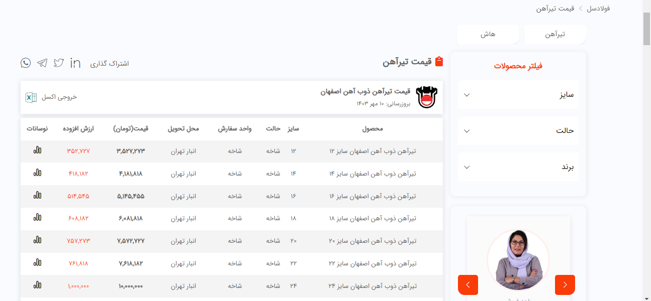 📆 ۱۴۰۳/۰۷/۱۰ 📆 ❇️ فولاد مبارکه 🏘(انبار تهران)🏘 ۶میل ۸میل ۱۰میل ☎️۰۲۱-۳۴۷۱۴ ☎️۰۲۱-۳۴۸۱۴۰۰۰ ☎️۰۲۱-۳۳۹۹۱۹۴۵-۹ https://t.me/foolad_radin
