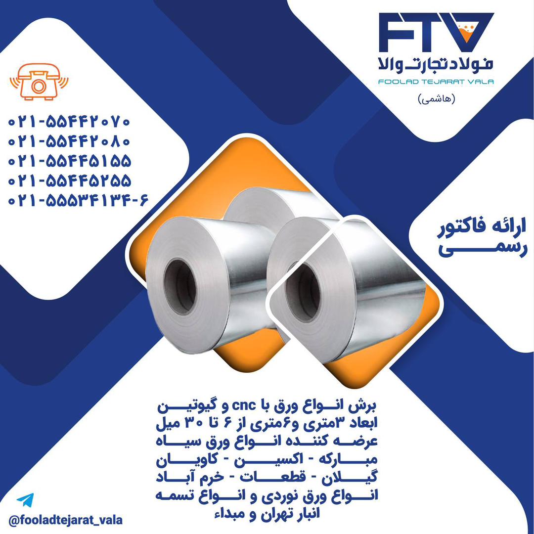 #شرکت_فولاد_تجارت_والا (هاشمی) 🔹برش انواع ورق باcncوگیوتین 3متری و6متری از 6 میل تا 50 میل 🔹 🔹عرضه کننده انواع ورق سیاه🔹 🔹مبارکه 🔹اکسین 🔹کاویان 🔹گیلان 🔹قطعات 🔹خرم آباد 🔹انواع ورق نوردی 🔹انواع تسمه ✅ انبار تهران و مبادی همه محصولات موجود می باشد 📍 ✅فاکتور رسمی 🔹همراهی شماباعث افتخار ماست🔹 021-55442080 021-55442070 021-55445255 021-55445155 021-55534134-6 برای مشاهده پروفایل کاربری فولاد تجارت والا https://foolad24.com/profile/2283 برای مشاهده لیست اعلام موجودی فولاد تجارت والا https://foolad24.com/profile/2283/inventory https://t.me/fooladtejarat_vala
