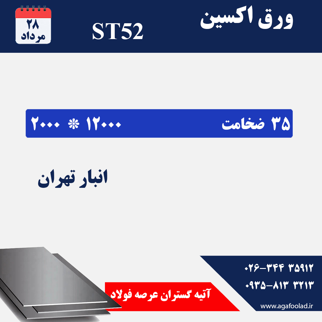 ورق اکسین st52 انبار تهران جهت استعلام قیمت با ما در ارتباط باشید 0935-8133213 026-34435912 www.agafoolad.ir