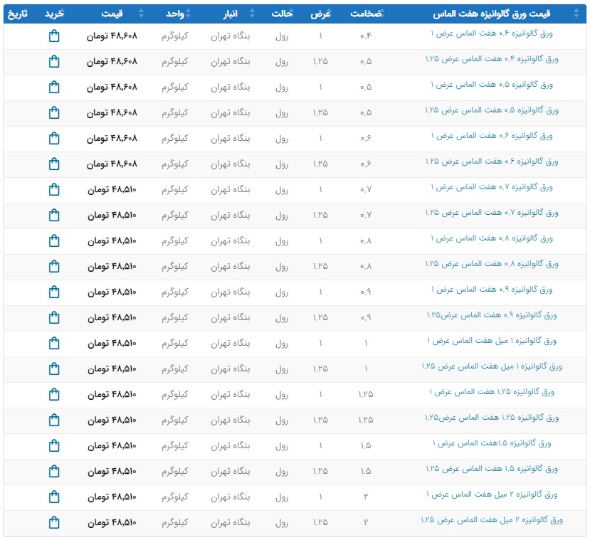 اعلام موجودی ورق گالوانیزه مبارکه کاشان