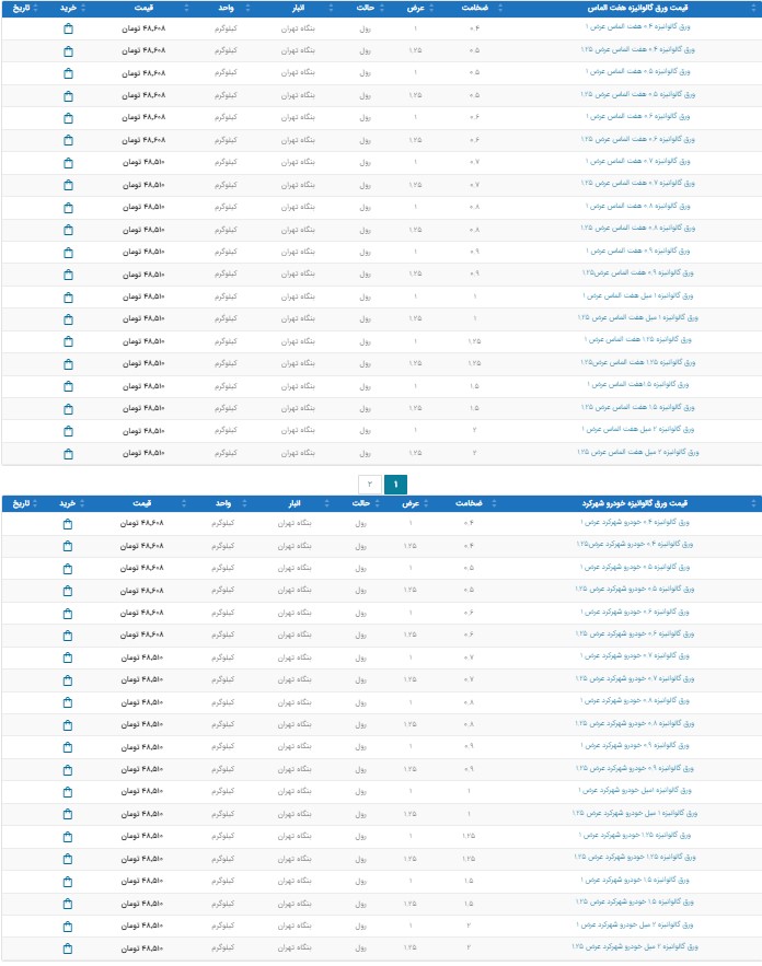 اعلام موجودی ورق گالوانیزه