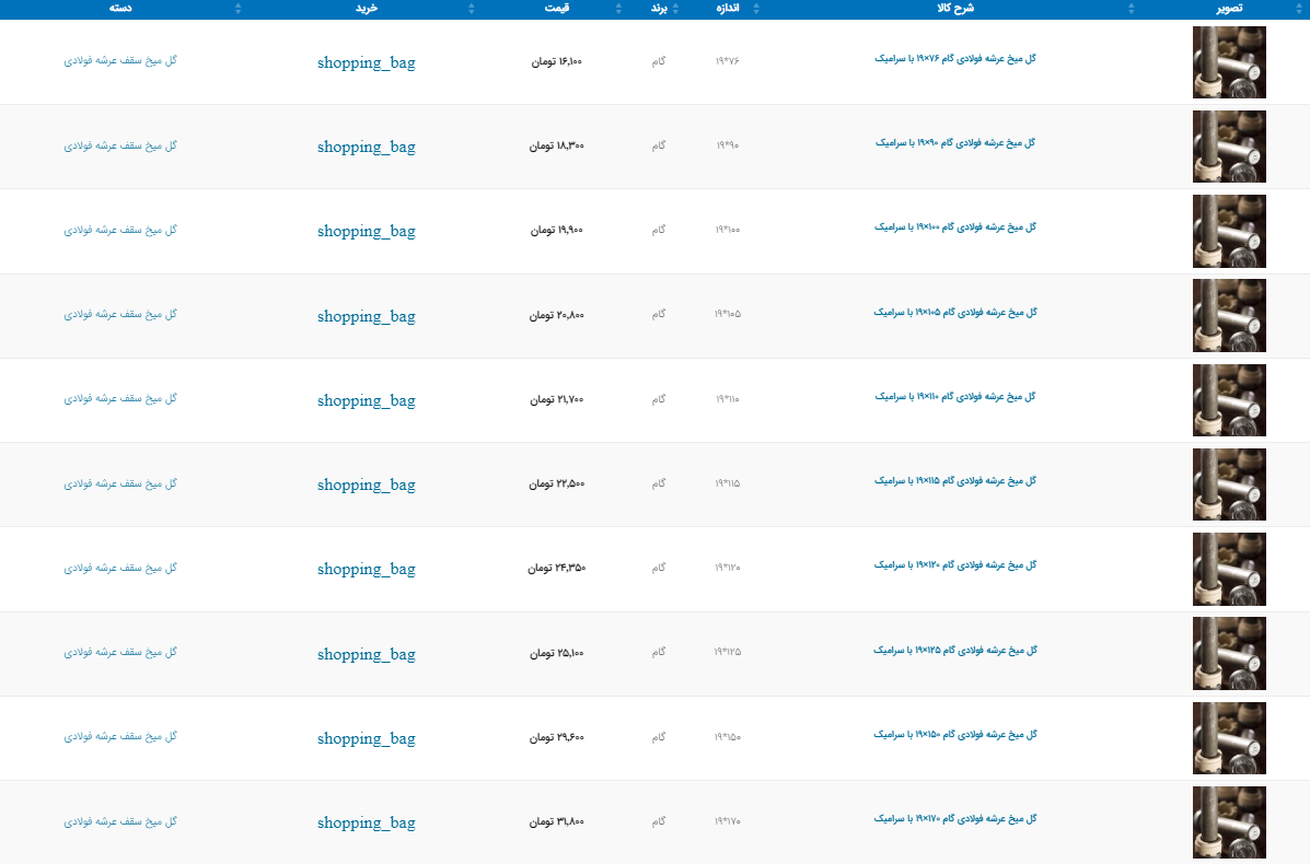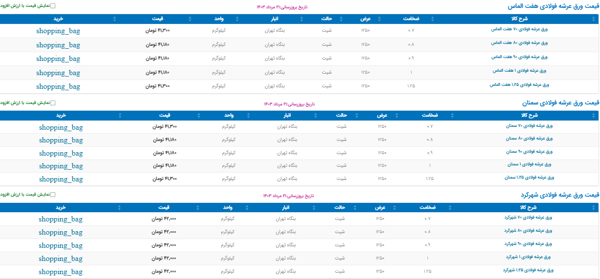 اعلام موجودی ورق گالوانیزه