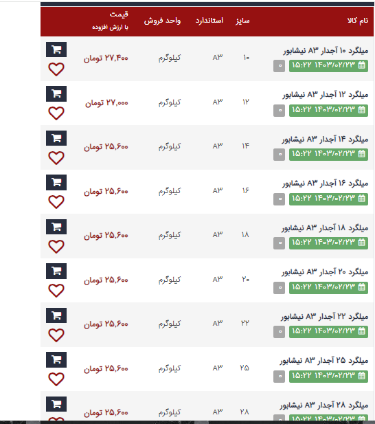 اعلام موجودی تیرآهن