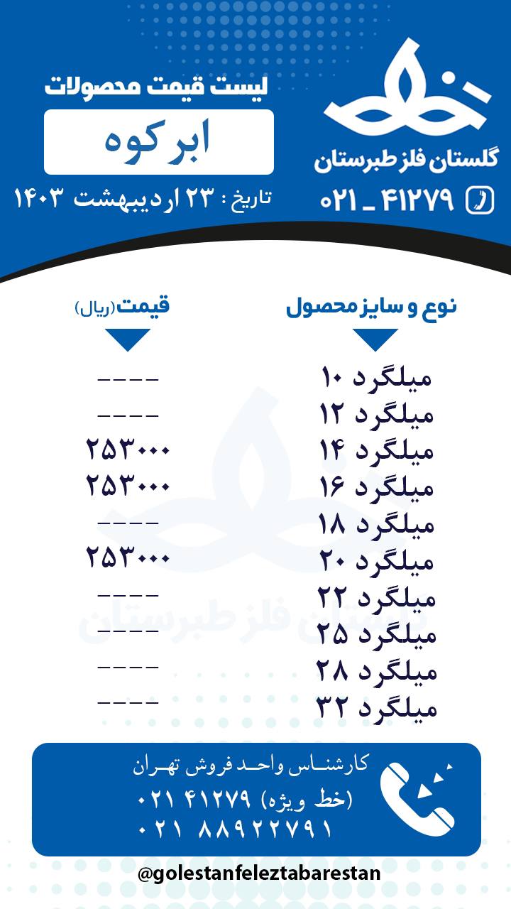 فولاد راد همدان سایز ۸ ۲۹۶۷۵۰ ﷼ سایز ۱۰ ۲۹۱۷۵۰ ﷼ سایز ۱۲ ۲۸۴۷۵۰ ﷼ سایز ۱۴-۲۲ ۲۸۱۷۵۰ ﷼ سایز ۲۵و۲۸ ۲۸۲۲۵۰﷼ ☑️ با تایید اینستاگرام