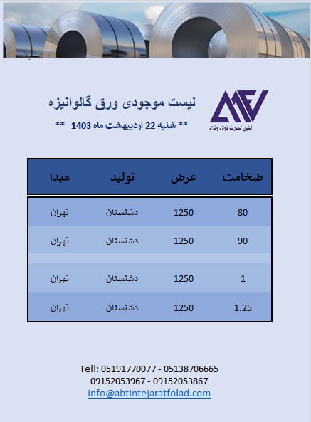 ✳️#آبتین_تجارت_فولاد_ونداد ⬅️ توزیع انواع ورق های فولادی از مبادی: 🔸ورق روغنی فولاد غرب آسیا 🔸ورق سیاه گیلان 🔸ورق سیاه مبارکه 🔸ورق گالوانیزه #جهت_مشاهده_پروفایل_آبتین_تجارت_فولاد_ونداد👇🏻 📌https://foolad24.com/profile/11718 #جهت_مشاهده_اعلام_موجودی_ آبتین_تجارت_فولاد_ونداد👇🏻 https://foolad24.com/profile/11718/inventory ☎️ 05191770077 ☎️ 05138706667 📱09152053867 📱09152053967 https://t.me/abtintejaratfuoladvandad