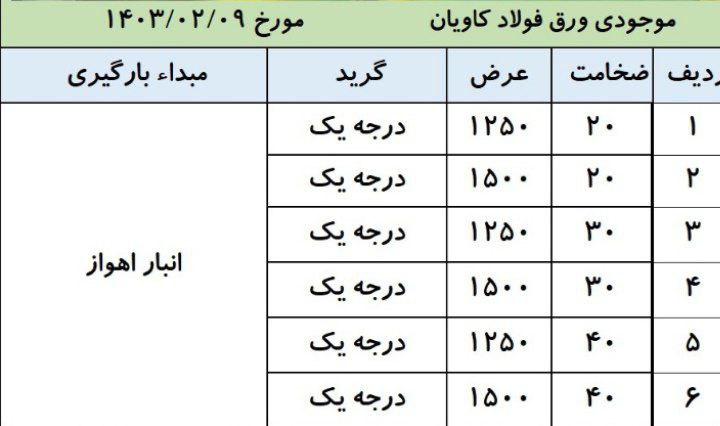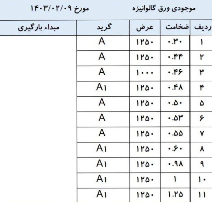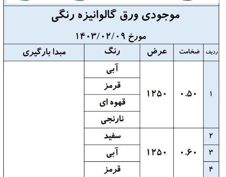 اعلام موجودی تولیدات و مصنوعات فلزی