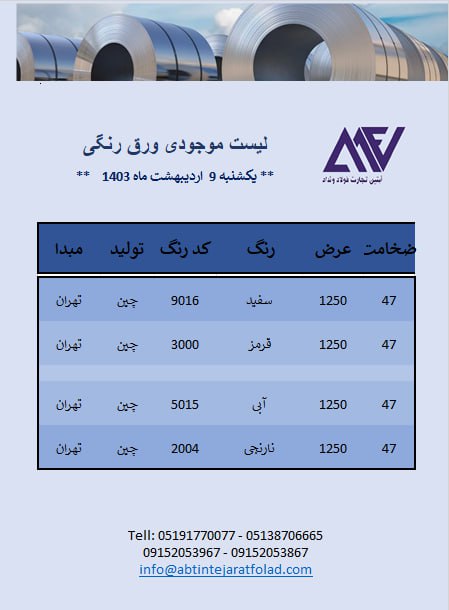 اعلام موجودی ورق گالوانیزه