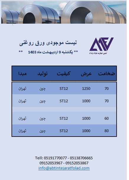 اعلام موجودی ورق روغنی (سرد)