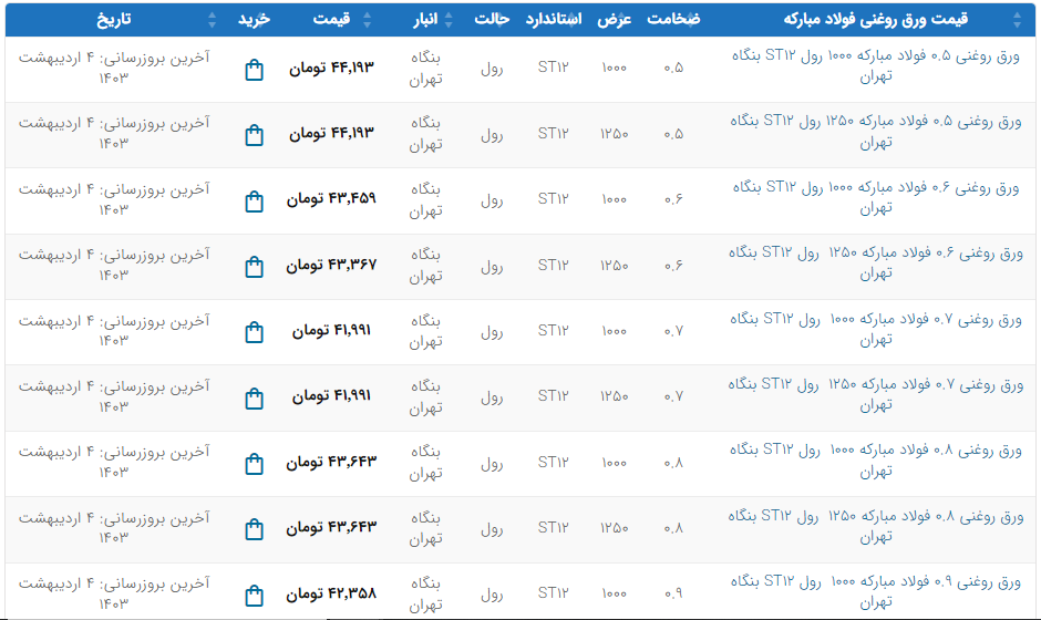 اعلام موجودی تعاونی آهن الات تهران سه شنبه ۴ اردیبهشت تیرآهن ✅تیر ۱۲ ذوب آهن ۳۳۰.۰۰۰ ✅تیر ۱۴ ذوب آهن ۳۳۰.۰۰۰ ✅تیر ۱۶ ذوب آهن ۳۲۰.۰۰۰ ✅تیر ۱۸ ذوب آهن ۳۱۵.۰۰۰ ✅ تیر۲۲ ذوب آهن ۳۳۵.۰۰۰ ✅ تیر ۲۴ ذوب آهن ۳۱۴.۰۰۰ ✅تیر ۲۷ ذوب آهن ۳۱۴.۰۰۰