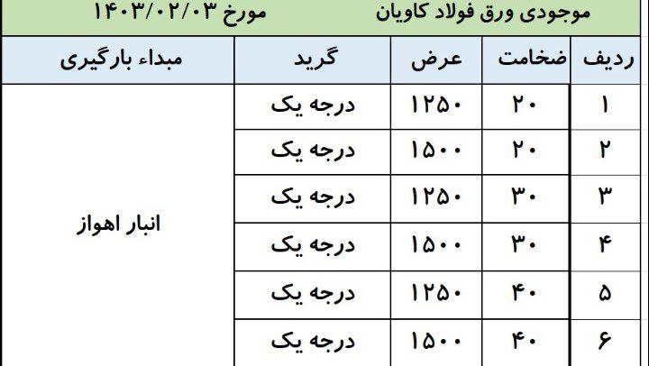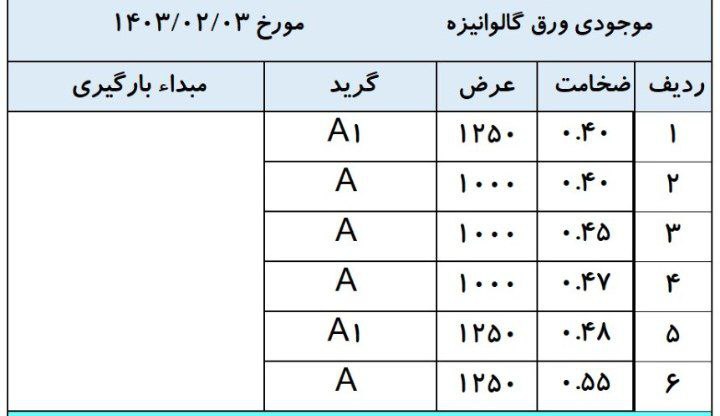 اعلام موجودی ورق گالوانیزه