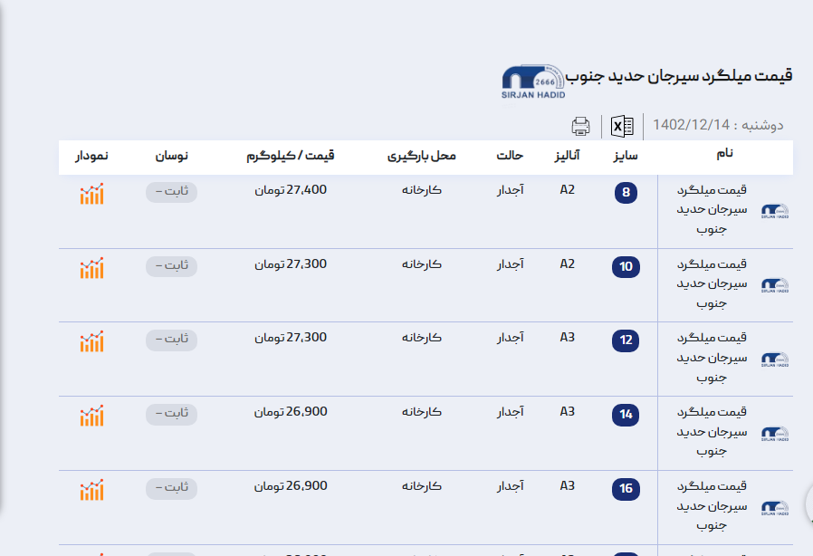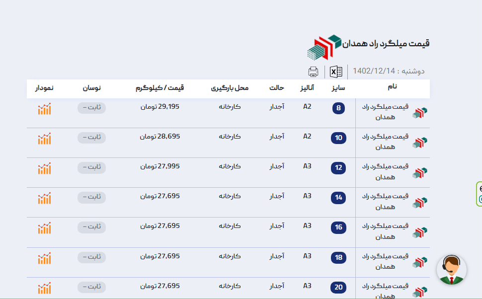 ST37: 125*2.5 150*6 ST52: 155*6 125*3 STW22: 125*2 125*3 ST37 چینی : 150*1.5 150*1.8