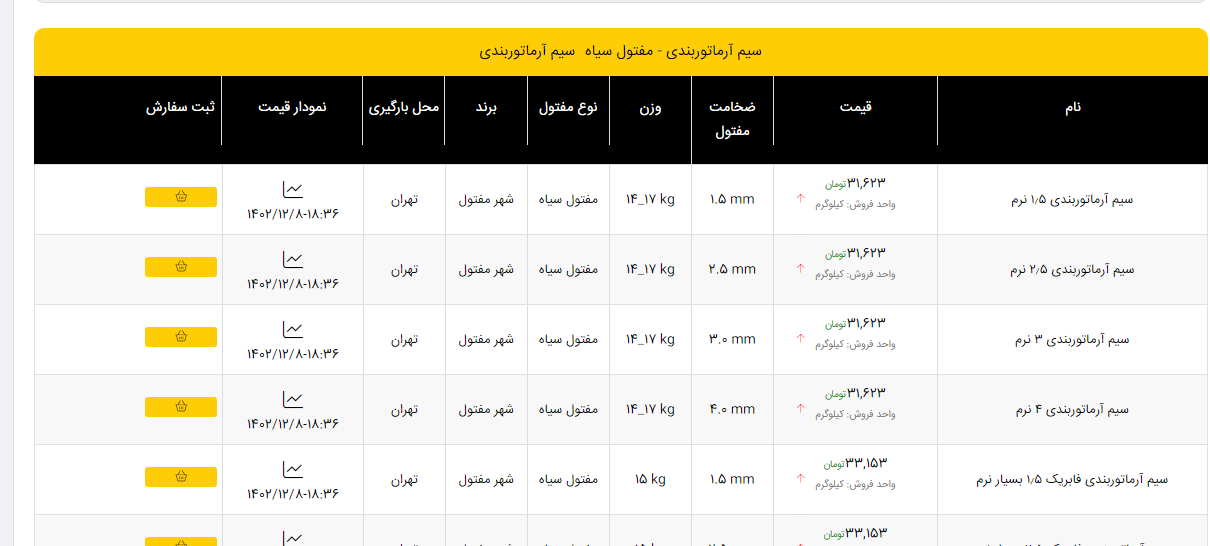 اعلام موجودی آدینا فولاد عصر نوین میلگرد آجدار مجتمع فولاد سازان دقيقي (هشترود) ميلگرد آجدار A2سایز ۸ : ۲۸۷۰۰۰ ميلگرد آجدار A2سايز ١٠ : ۲۸۴۰۰۰ میلگرد آجدار A3 سایز ۱۲: ۲۸۴۰۰۰ میلگرد آجدار A3 سایز ۱۴: ۲۷۶۰۰۰ ميلگرد آجدار A3سايز ١٦ : ۲۷۶۰۰۰ ميلگرد آجدار A3سايز ١٨ : ۲۷۶۰۰۰ ميلگرد آجدار A3سايز ٢٠ : ۲۷۶۰۰۰ ميلگرد آجدار A3سايز ٢٢ : ۲۷۶۰۰۰ میلگرد آجدارA3سایز۲۵: . ❌