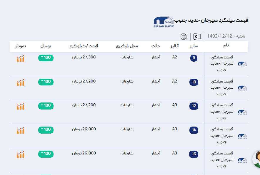▪️🌼🌼به نام خدا🌼🌼▪️ 1402/12/11 📊گرد6/5 بندیل 28000 📊گرد6/5 باز 28500 📊گرد8سمنان آ۳ 27000 📊گرد10ابهر 27200 📊گرد10 ارین 28000 📊گرد10 ارین آ۳ 28300 📊گرد12 ارین 28000 📊گرد12 ارین آ۳ 28000 📊گرد12 ابهر 27200 📊گرد14اروند 26300 📊گرد16اروند 26200 📊گرد14پرشین 26500 📊گرد16پرشین 26500 📊گرد18پرشین 26500 📊گرد20پرشین 26500 📊گرد22پرشین 26500 📊گرد25پرشین 26500 📊گرد14کاسپین 26300 📊گرد16کاسپین 26300 📊گرد14ابهر 26300 📊گرد16ابهر 26300 📊گرد14ابرکوه 26500 📊گرد16ابرکوه 26500 📊گرد18ابرکوه 26500 📊گرد20ابرکوه 26500 📊گرد22ابرکوه 26500 📊گرد14اصفهان 26500 📊گرد18اصفهان 26500 📊گرد20 اصفهان 26500 📊گرد14نیشابور 27000 📊گرد16نیشابور 27000 📊گرد18نیشابور 27000 📊گرد20نیشابور 27000 📊گرد22نیشابور 27000 📊گرد25نیشابور 27000 📊گرد14پردیس 26500 📊گرد16پردیس 26500 📊گرد18پردیس 26500 📊گرد20پردیس 26500 📊گرد22پردیس 26500 📊گرد12هیربد 27500 📊گرد14هیربد 26700 📊گرد16هیربد 26700 📊گرد18هیربد 26700 📊گرد20هیربد 26700 📊گرد22هیربد 26700 📊گرد25هیربد 26700 کلیه اجناس درب مغازه شادآباد میباشد 📁در صورت درخواست مشتری کلیه کالاها با فاکتور رسمی ارائه میگردد آدرس:تهران،بازارآهن شادآباد،مجتمع بهاران۲،بلوک ۳۳،پلاک ۱۰۰ تلفن: 66317671 لینک کانال:@milgrd_ghaffarii