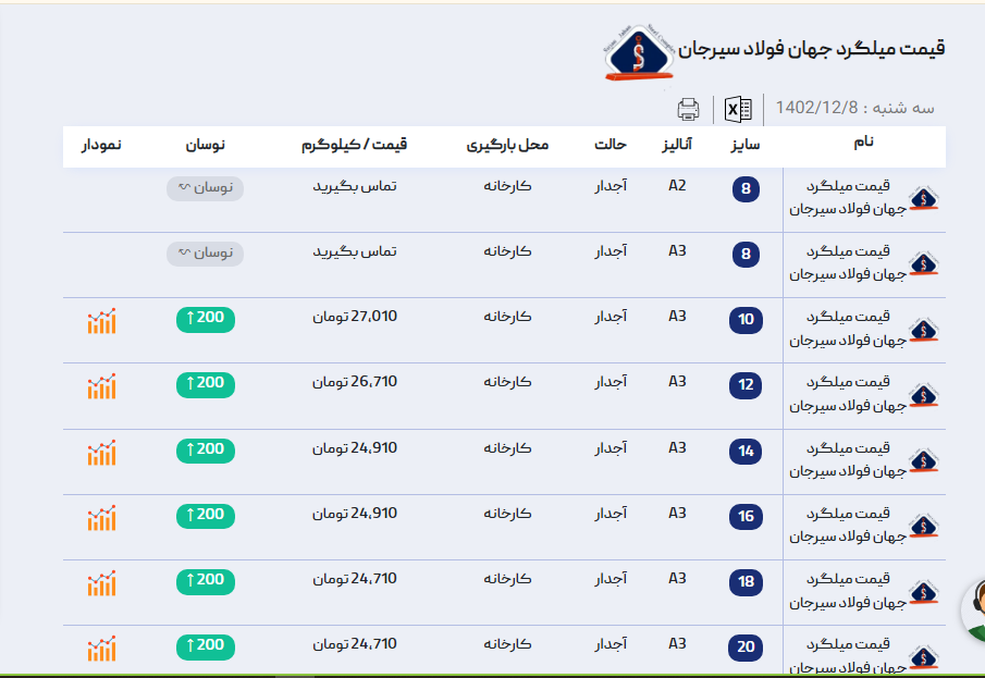 اعلام موجودی میلگرد