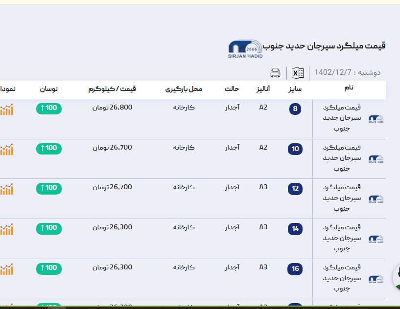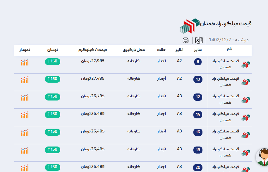 اعلام موجودی میلگرد