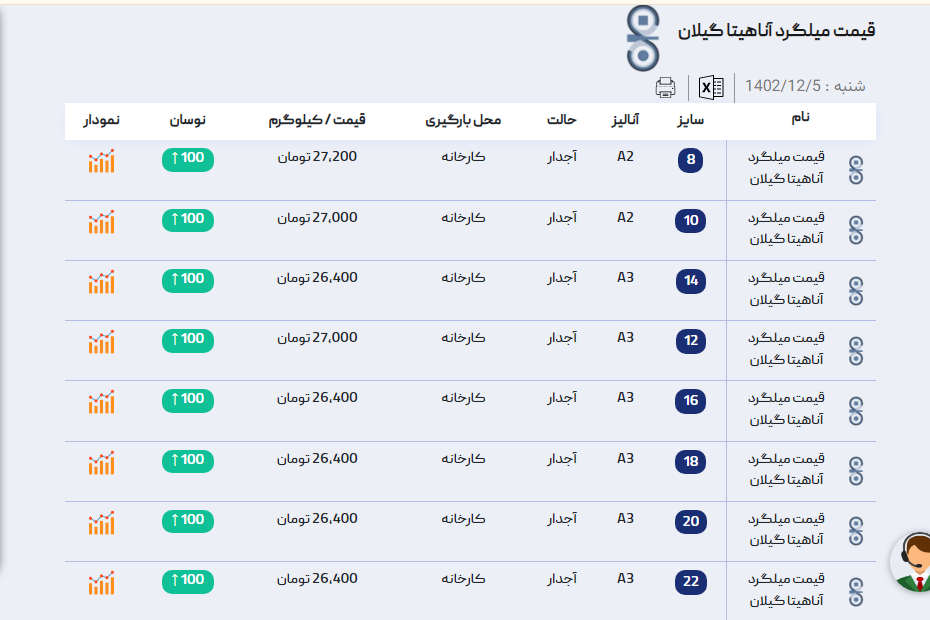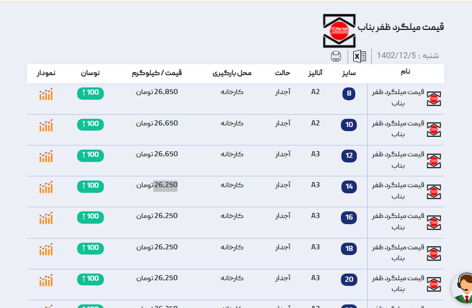 ♦️♦️به نام خدا♦️♦️ ۱۴۰۲/۱۲/۵ 🔸تهران خرمدشت ♦️۱۰اجدار=📞 ♦️۱۲اجدار=📞 نیشابور ♦️۱۴ آجدار=📞 ♦️۱۶ آجدار=📞 ♦️۱۸ آجدار=📞 ♦️۲۰ آجدار=📞 ♦️۲۲ آجدار=زرد 📞 میانه ♦️۱۴اجدار=📞 ♦️۲۲اجدار=📞 ظفر بناب ♦️۱۸ آجدار=محدود 📞 ابهر ♦️۱۸ آجدار=📞 ♦️۲۰ آجدار=📞 اهرامیان ♦️۲۲ آجدار=📞 خلیج ♦️۲۰ آجدار=📞 امیرکبیر ♦️۱۴اجدار=📞 🔹در صورت درخواست، فروش با فاکتور رسمی هم پذیرفته میشود. https://t.me/fooladkhanbaba