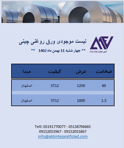 ✳️#آبتین_تجارت_فولاد_ونداد ⬅️ توزیع انواع ورق های فولادی از مبادی: 🔸ورق روغنی فولاد غرب آسیا 🔸ورق سیاه گیلان 🔸ورق سیاه مبارکه 🔸ورق گالوانیزه #جهت_مشاهده_پروفایل_آبتین_تجارت_فولاد_ونداد👇🏻 📌https://foolad24.com/profile/11718 #جهت_مشاهده_اعلام_موجودی_ آبتین_تجارت_فولاد_ونداد👇🏻 https://foolad24.com/profile/11718/inventory ☎️ 05191770077 ☎️ 05138706667 📱09152053867 📱09152053967 https://t.me/abtintejaratfuoladvandad