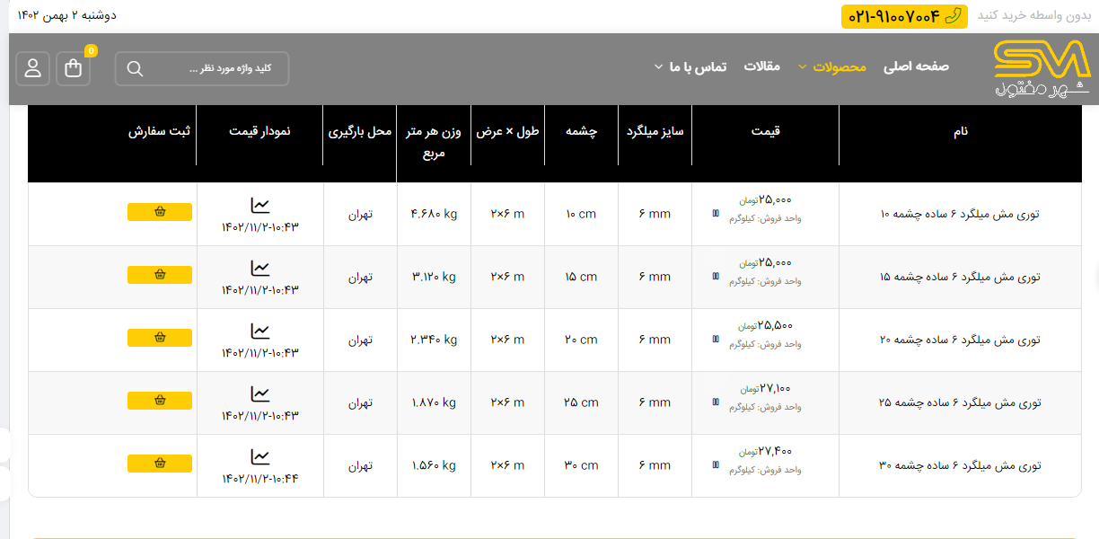 اعلام موجودی میلگرد