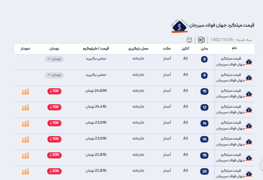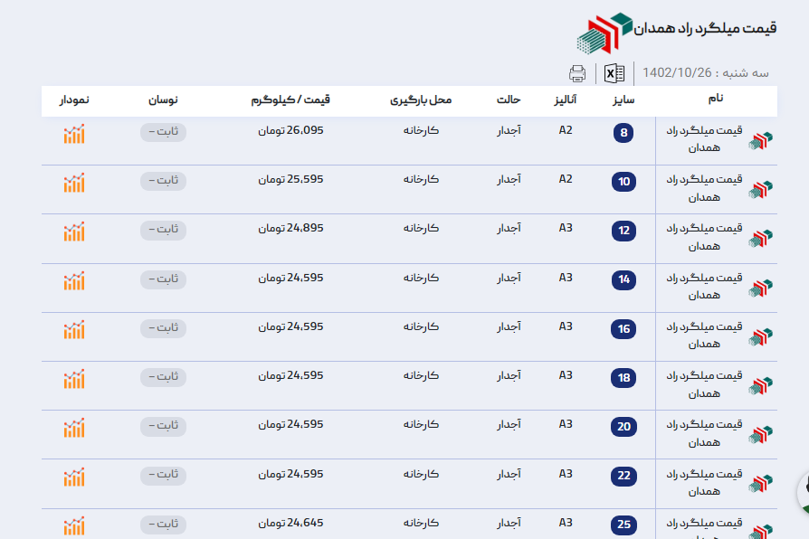 اعلام موجودی میلگرد
