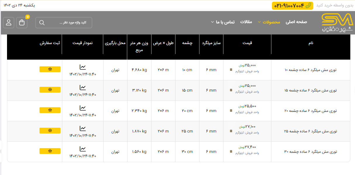 ▪️🌼🌼به نام خدا🌼🌼▪️ 1402/10/24 📊گرد6/5 بندیل 24500 📊گرد6/5 باز 25000 📊گرد8 ابهر 23900 📊گرد8 بناب 23900 📊گرد8 سپهر 24500 📊گرد8 کلاف 28000 📊گرد10 کلاف 28000 📊گرد10 ابهر 22800 📊گرد10 ارین 23500 📊گرد12 ابهر 22900 📊گرد16ابرکوه 22700 📊گرد16پرشین 22800 📊گرد18پرشین 22800 📊گرد20پرشین 22800 📊گرد14اصفهان 24500 📊گرد16اصفهان 24500 📊گرد18اصفهان 24500 📊گرد25اصفهان 24000 📊گرد14نیشابور 23900 📊گرد16نیشابور 23900 📊گرد18نیشابور 23900 📊گرد20نیشابور 23900 📊گرد22نیشابور 23900 📊گرد25نیشابور 23900 📊گرد12میانه 24200 📊گرد16میانه 23200 📊گرد18میانه 23200 📊گرد25میانه 23200 📊گرد32میانه 24100 📊گرد14کاسپین 22700 📊گرد16کاسپین 22700 📊گرد18کاسپین 22700 📊گرد20کاسپین 22700 📊گرد10پردیس 24000 📊گرد12پردیس 23500 📊گرد14پردیس 23000 📊گرد16پردیس 23000 📊گرد18پردیس 23000 📊گرد20پردیس 23000 📊گرد22پردیس 23000 📊گرد25پردیس 23000 📊گرد28پردیس 23500 📊گرد32پردیس 23500 📊گرد12هیربد 23500 📊گرد14هیربد 23100 📊گرد16هیربد 23100 📊گرد18هیربد 23100 📊گرد20هیربد 23100 📊گرد22هیربد 23100 📊گرد25هیربد 23100 📊گرد28هیربد 23500 📊گرد32هیربد 23500 کلیه اجناس درب مغازه شادآباد میباشد 📁در صورت درخواست مشتری کلیه کالاها با فاکتور رسمی ارائه میگردد آدرس:تهران،بازارآهن شادآباد،مجتمع بهاران۲،بلوک ۳۳،پلاک ۱۰۰ تلفن: 66317671 لینک کانال:@milgrd_ghaffarii