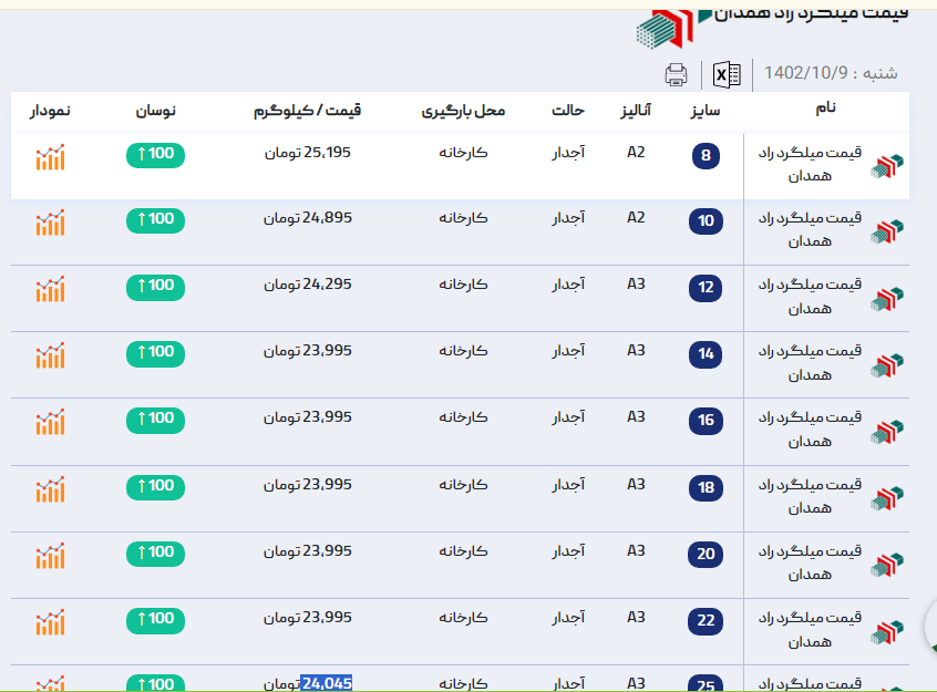 میلگرد #رادهمدان (کارخانه)۱۰۰افزایش🔺 ۲۳۹۹۵ همراه با تخفیف