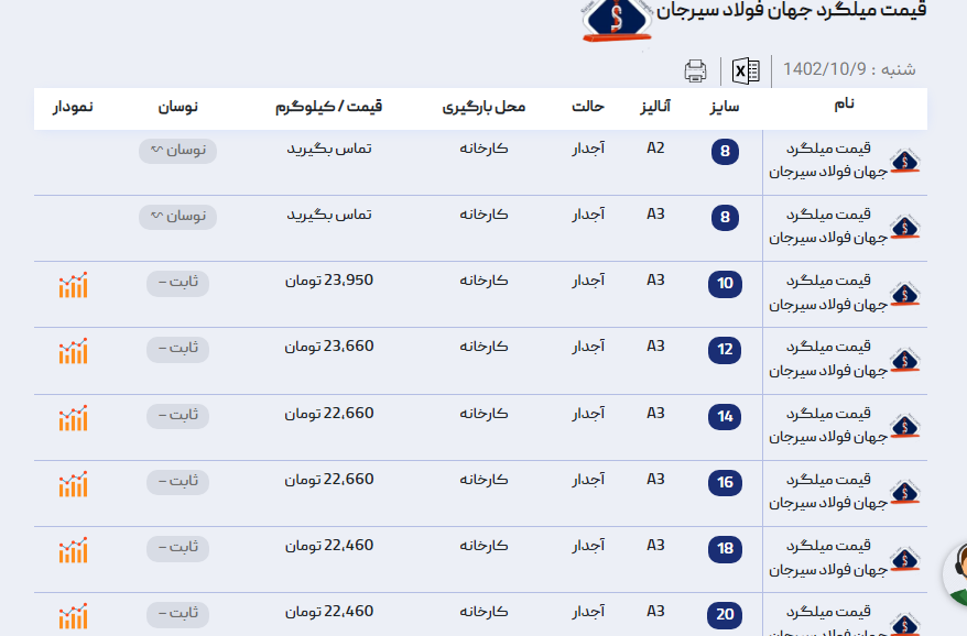 ۱۴۰۲/۱۰/۰۹ فولاد راد همدان سایز ۸ ۲۵۱۹۵۰ ﷼ سایز ۱۰ ۲۴۸۹۵۰ ﷼ سایز ۱۲ ۲۴۲۹۵۰ ﷼ سایز ۱۴-۲۲ ۲۳۹۹۵۰ ﷼ سایز ۲۵و۲۸ ۲۴۰۴۵۰﷼ ☑️ تخفیف پای معامله اینستاگرام
