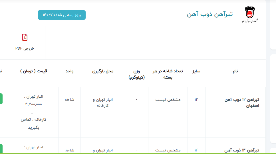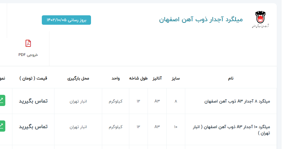 اعلام موجودی ورق گالوانیزه و رنگی