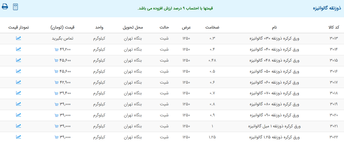 اعلام موجودی ورق گالوانیزه و رنگی