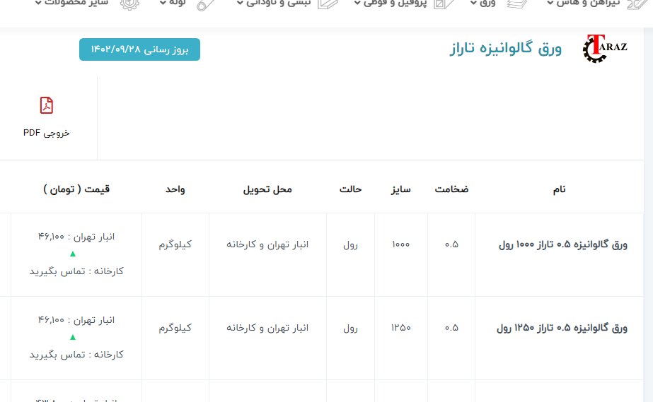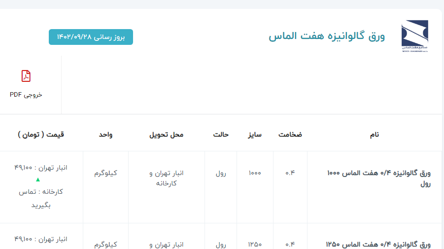اعلام موجودی نبشی آهن یاب ❇️ لیست کالای فولاد ناب تبریز : 📅 سه شنبه : ۱۴۰۲/۹/۲۸ (ثبات قیمت) ♦️ نبشی ۴*۴ 💵23550 تومان ♦️نبشی ۵*۵ 💵23150 تومان ♦️ نبشی۶*۶ 💵23150 تومان